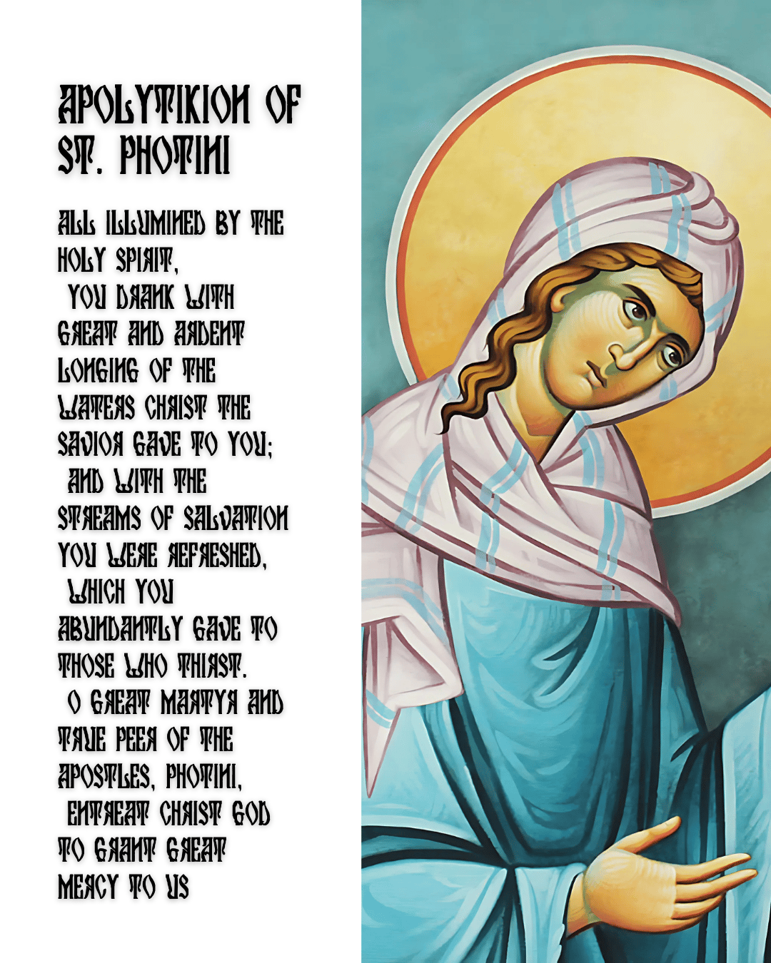 In the icon above, Saint Photini (meaning “the enlightened one”) stands with her water jar before the well, symbolizing her transformation from seeking physical water to proclaiming Christ as the source of living . This beautiful image reflects how Christ gently draws her into deeper faith, an invitation echoed in our hearts today.